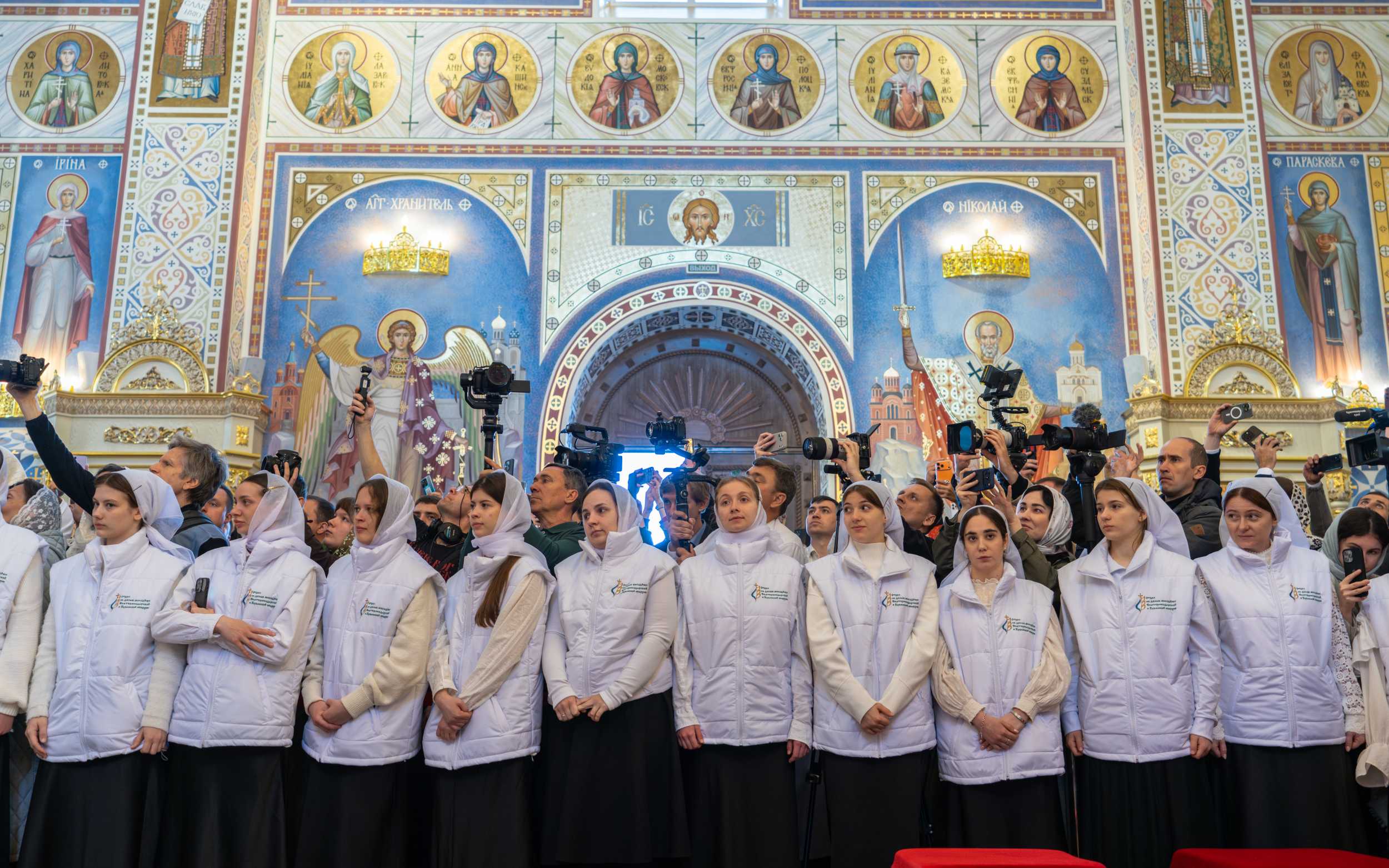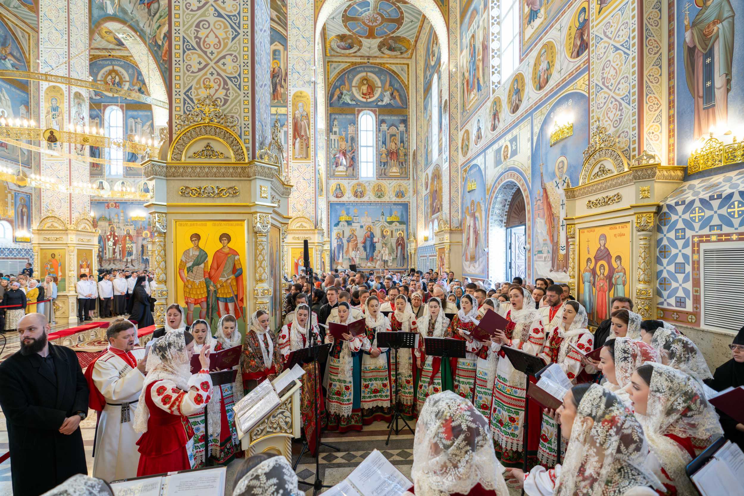 Богослужебные песнопения исполнил Государственный академический ордена Дружбы народов, ордена Русской Православной Церкви святого благоверного князя Дмитрия Донского I степени Кубанский казачий хор под управлением Анны Монтиковой (художественный руководитель — народный артист России, Герой Труда Российской Федерации, дважды Герой Труда Кубани, казачий полковник, профессор, композитор В.Г. Захарченко).