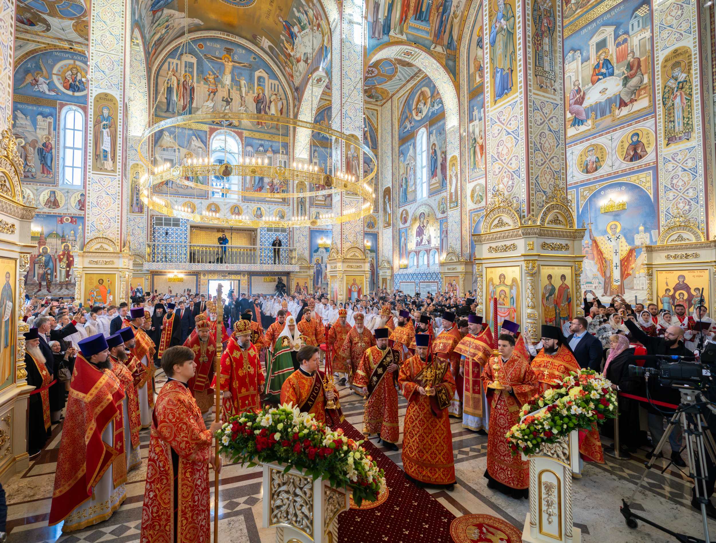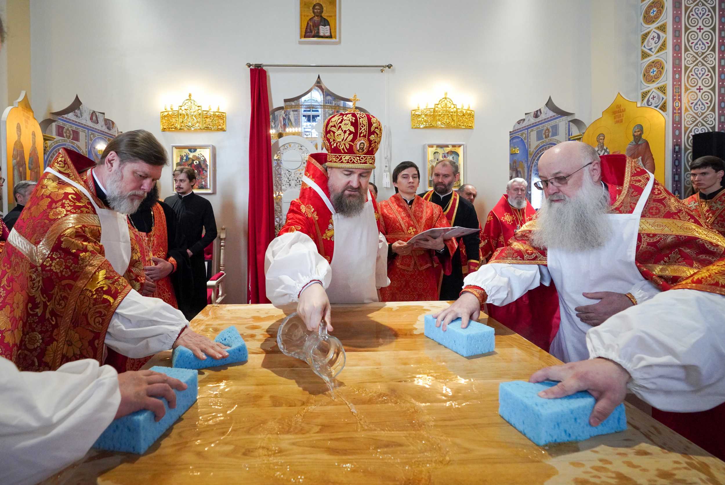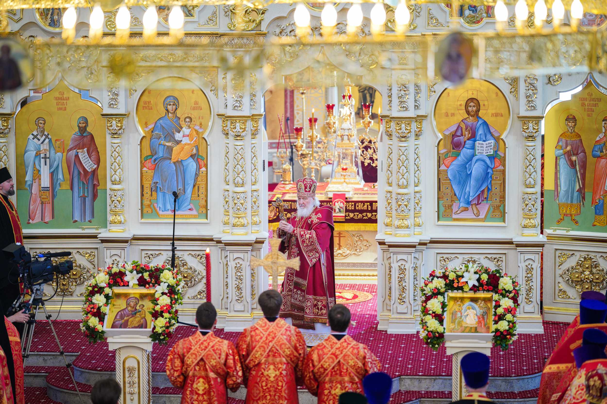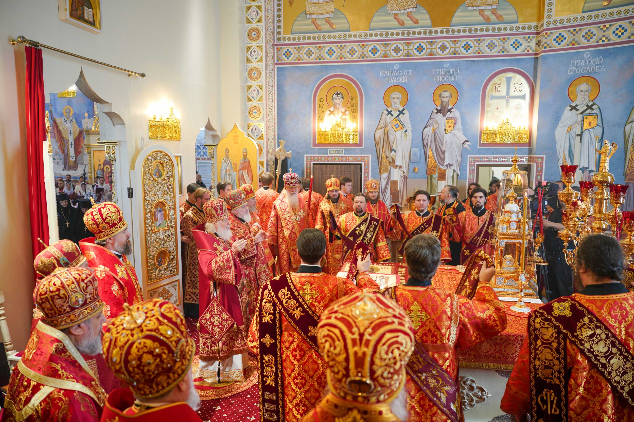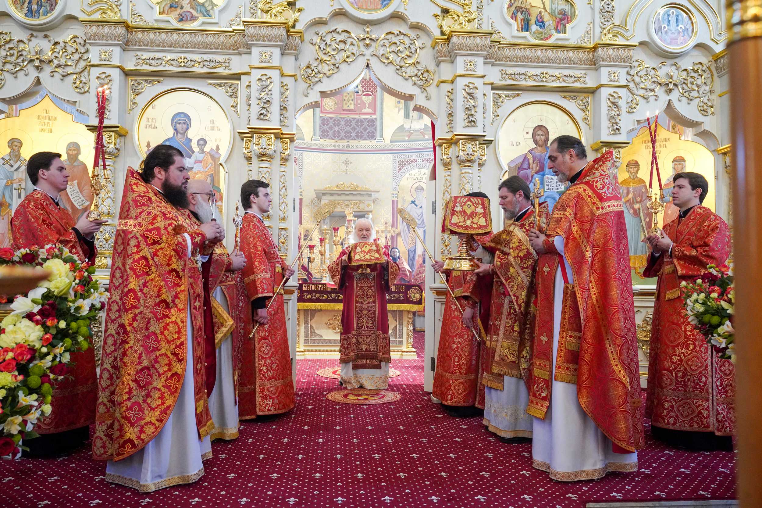Были освящены два престола: центральный в честь Рождества Христова и правый в честь Благовещения Пресвятой Богородицы.
