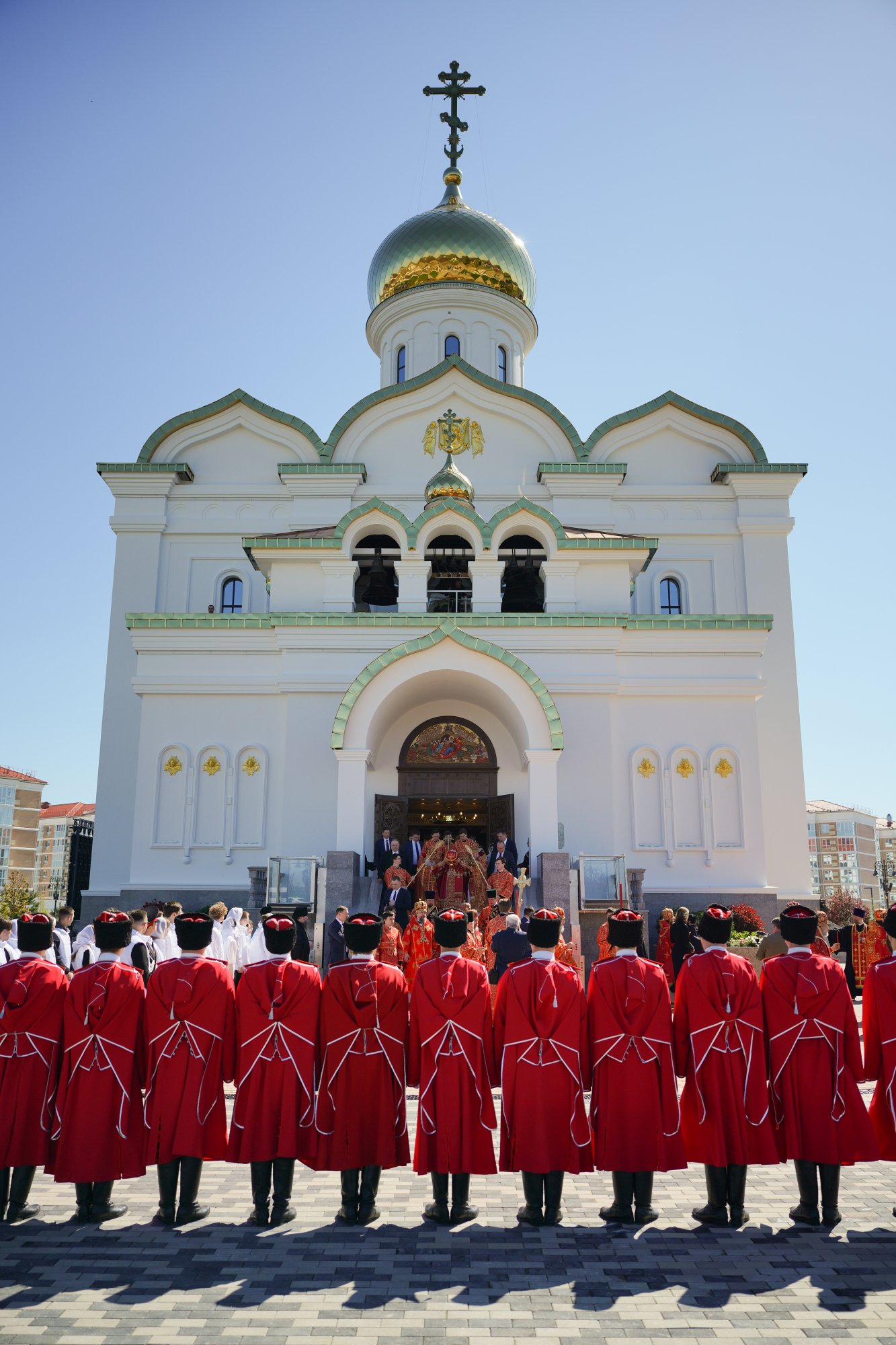 У врат храма Предстоятеля Русской Православной Церкви встречали: полномочный представитель Президента Российской Федерации в Южном федеральном округе В.В. Устинов; губернатор Краснодарского края В.И. Кондратьев; глава Кубанской митрополии митрополит Екатеринодарский и Кубанский Василий; благочинный 14-го Краснодарского церковного округа, настоятель храма Рождества Христова в станице Динской протоиерей Иоанн Лапко; секретарь епархиального управления Екатеринодарской епархии протоиерей Димитрий Руднев; почетный караул Кубанского войскового казачьего общества.