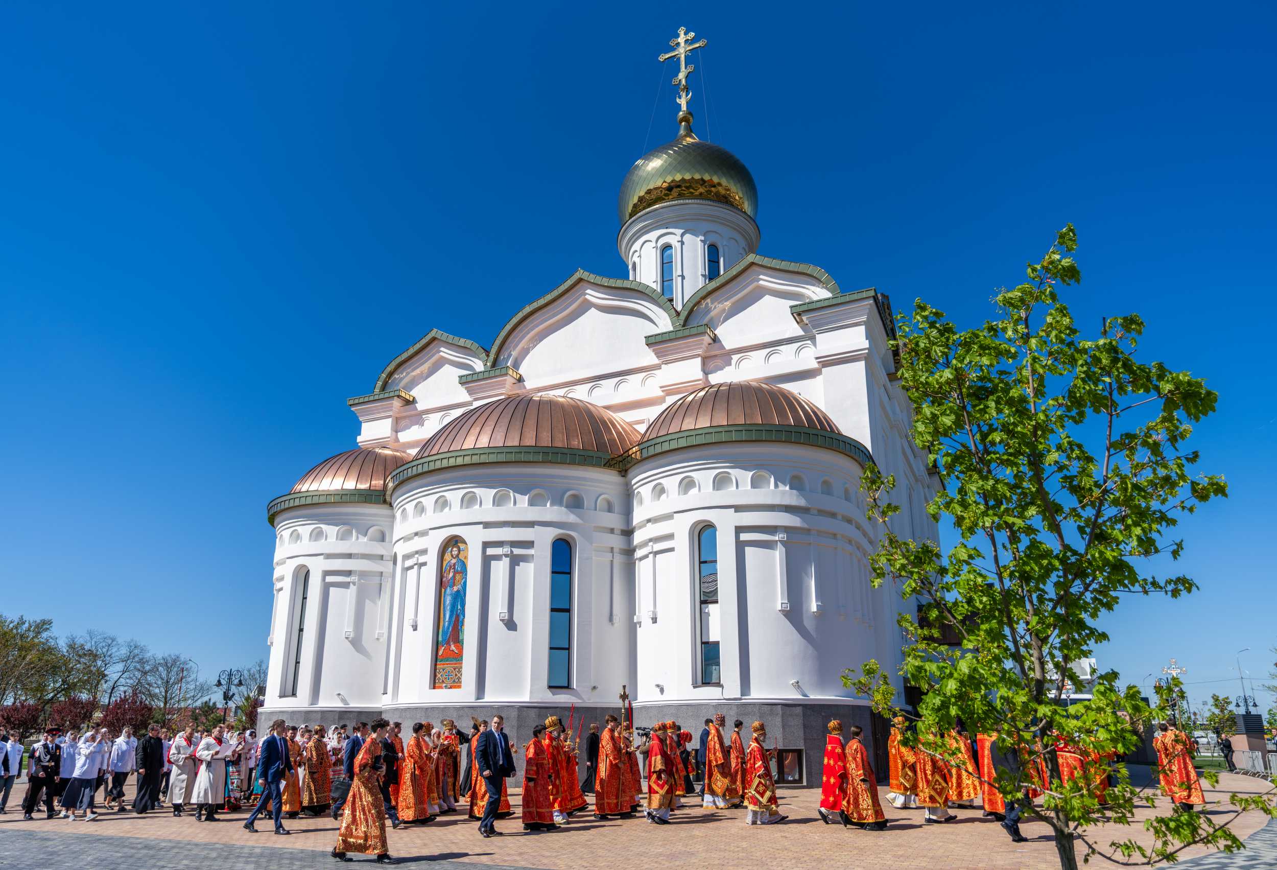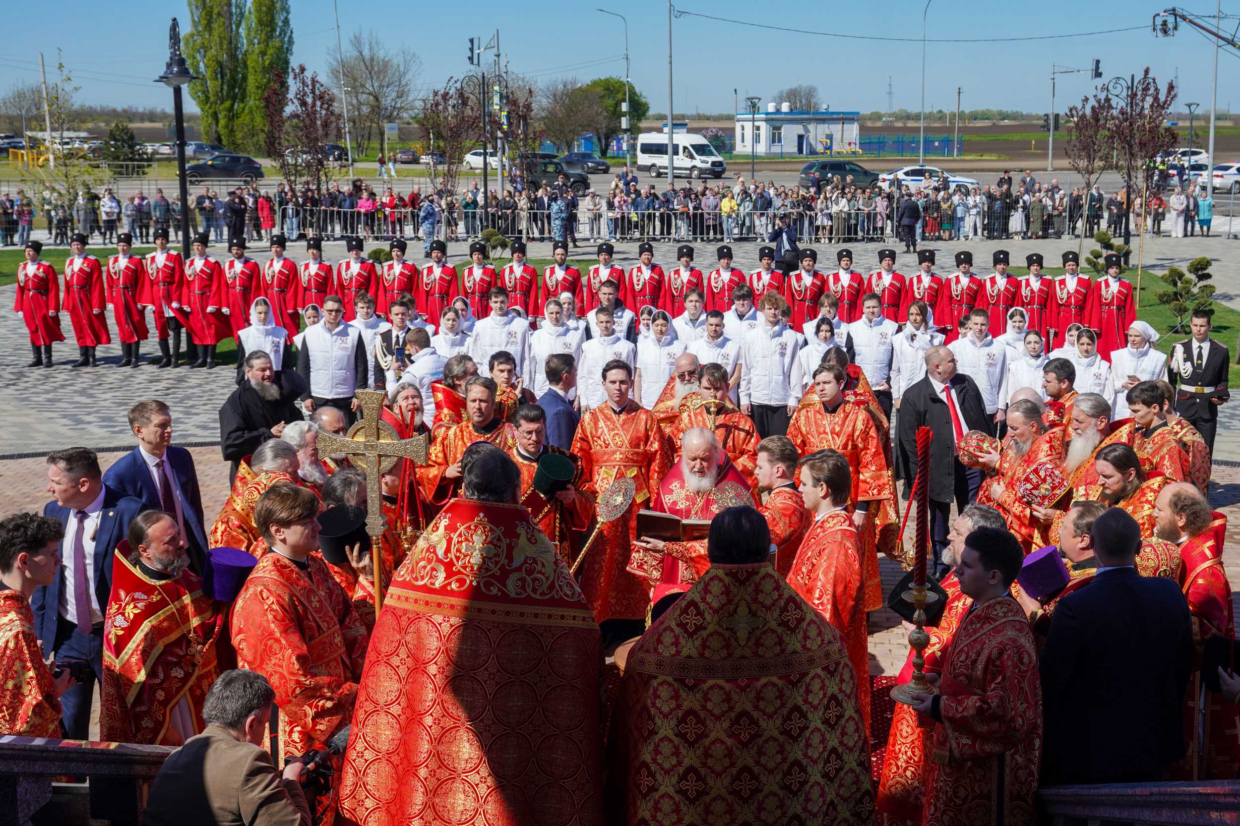 26 апреля 2026 года, в Неделю 3-ю по Пасхе, святых жен-мироносиц, Святейший Патриарх Московский и всея Руси Кирилл совершил чин великого освящения храма Рождества Христова в станице Динской Краснодарского края и Божественную литургию в новоосвященном храме.